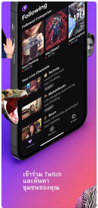 Twitch เป็นที่ที่ชุมชนหลายพันแห่งมารวมตัวกันเพื่อสตรีมเมอร์คนโปรดของเรา เพื่อเกมที่เราชื่นชอบ เพื่อรอยยิ้มและเสียงหัวเราะ เพื่อกันและกัน หรือเพื่ออะไรก็ได้ ดาวน์โหลด Twitch และร่วมสนุกกับเกมสด ดนตรี กีฬา อีสปอร์ต พอดคาสต์ รายการทำอาหาร สตรีม IRL และสิ่งอื่น ๆ เพื่อความบันเทิงเริงใจสุดเหวี่ยงของชุมชนของเรา แล้วเจอกันในแชทนะ.